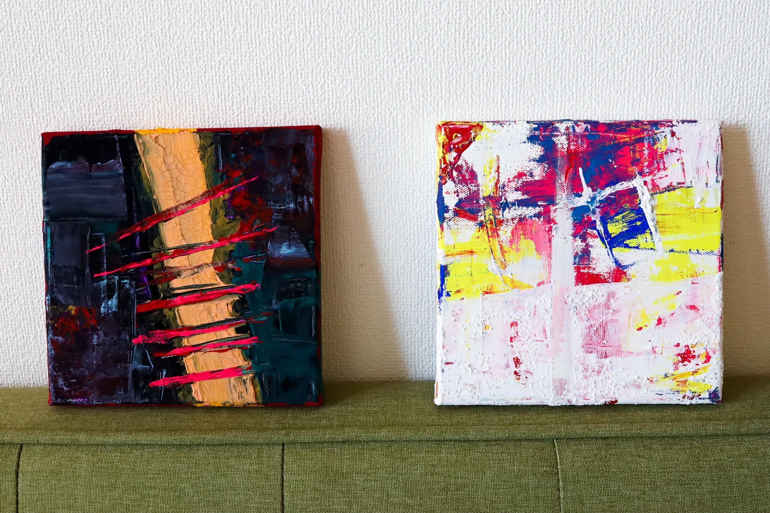 ・アクリル絵の具の質感をお楽しみいただくため、ニス加工などはしておりません。